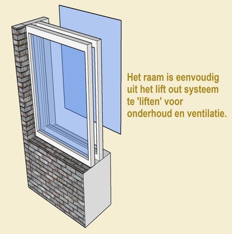 - Uitneembaar. Onze systemen hebben allemaal een kader profiel waar de ramen in zijn opgenomen. De ramen zijn uitneembaar, zonder dat daar gereedschap aan te pas komt. Makkelijk bij schoonmaak en onderhoud!